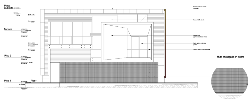 La intersección de volúmenes geométricos de diferentes tamaños es el sello distintivo de este proyecto, pues es la conjunción de diferentes módulos que se fusionan en único espacio funcional y agradable, la característica que dota a la construcción de un estilo moderno y original.